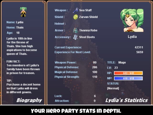 Chapter 2 in a four-part series! A vampire mage has acquired a magical relic with the power to enslave humanity. Are you brave enough to stop him? Take to the high seas and explore a massive world. Your goal: unlock the gate to Naylith, a mystical land filled with ancient knowledge, and the answer you need to defeat the vampire.Games that have been released in the series:Aveyond: Lord of Twilight (DOWNLOAD HERE) Aveyond: Gates of Night (DOWNLOAD HERE) Aveyond: The Lost Orb (DOWNLOAD HERE) Aveyond: The Darkthrop Prophecy (DOWNLOAD HERE)Features:HUMOR. Lots of it. Humor is the core of Aveyond. You will laugh... or else! Massive world filled with loads of monsters, loot, and civilizations. Steal a pirate ship! Learn to speak Orc. Open the portal to the Fairy Realm. Find the hidden world of Dragons and try not to get eaten! Travel with a large party of friends. Pick your leader and your fighters for turn-based battles. Seek out special academies to learn skills like climbing so that you can explore new areas. Help Edward, one of your party members, find a wife or face the wrath of his mother. Give or steal from temples. Obtain a magical sword that can have its properties changed by the gem you put in its hilt. Awesome music brought to you by an award-winning musician who has the entire Final Fantasy music library memorized. For the lazy: find the secret treasure caves and equip your heroes with mega weapons, gold, and level ups.