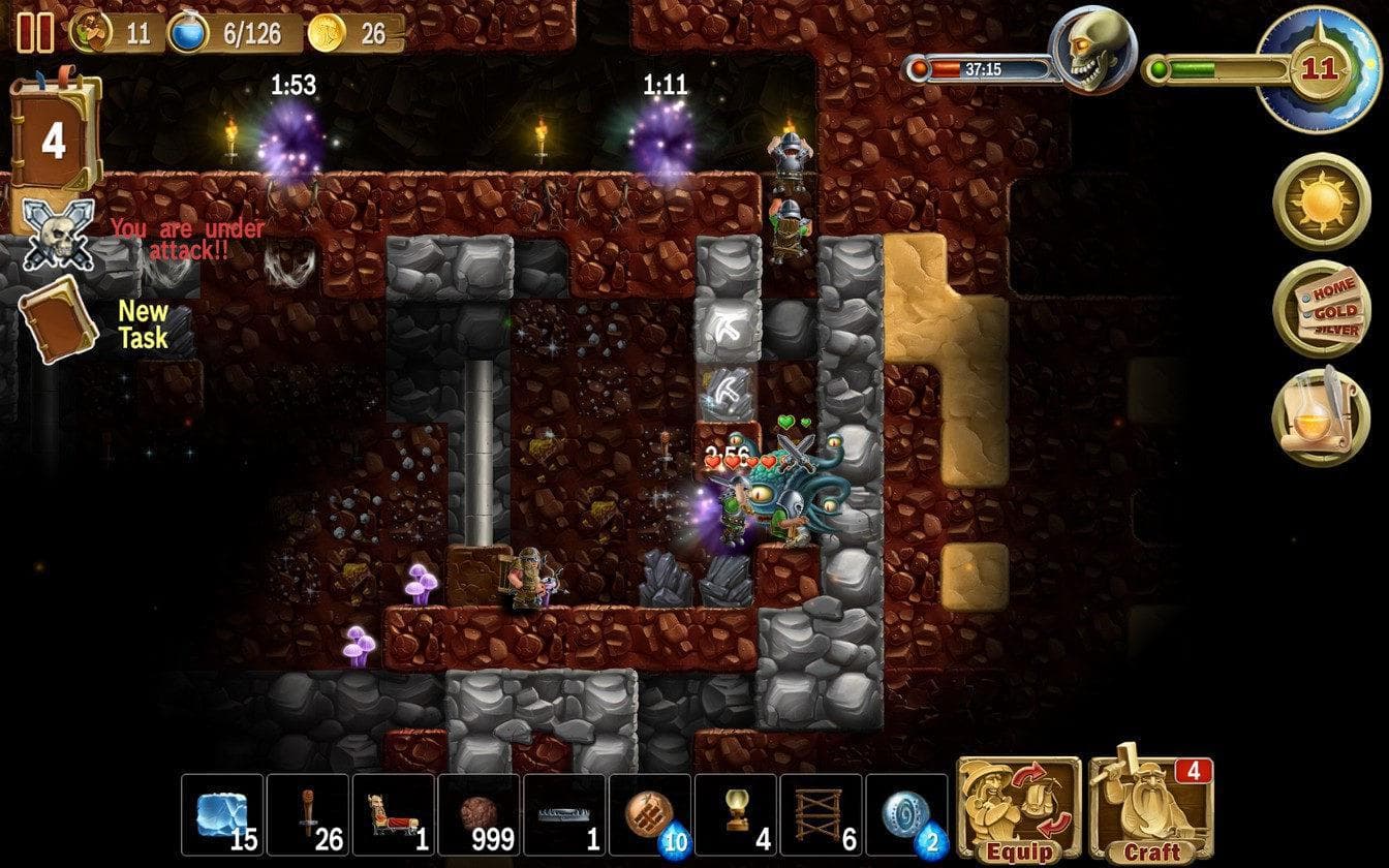 Craft The World is a unique sandbox strategy game, the mix of Dungeon Keeper, Terraria and Dwarf Fortress. Explore a random generated world populated by dangerous creatures, build a dwarf fortress, gather resources, and craft all the items, weapons, and armor you need. GOD-SIMULATION You control a tribe of dwarves by giving them commands to dig in certain places, attack enemy creatures, and build houses and other structures. You'll need to provide your dwarves food and clothing, as well as help them with magic when fighting against other inhabitants of the world. You start the game with one dwarf and gain additional dwarves as your experience level increases. SANDBOX GAME Each game level has many layers of earth to explore, from the sky down to boiling subterranean lava. The level is randomly generated as an island, restricted by natural boundaries: oceans on the edges, lava beneath it, and the sky above. Other features include day and night and changing weather conditions. The worlds differ in size, humidity, temperature, terrain, and flora and fauna. Abandoned halls and rooms with treasure are hidden somewhere deep within the islands. CRAFTING One feature of the game is a user-friendly system of recipes for crafting. The recipes are organized and easily accessible. You can craft dozens of different items: building blocks for houses, furniture, decorations, weapons, armor, ammunition, and food for your dwarves. RTS At the outset you find the recipes for basic tools and items, and build a small house with places to sleep and eat. Then, the size of the tribe increases and catches the attention of other inhabitants of the world. Most of them are night creatures and dwell underground. The worlds are full of fantasy creatures like zombies, skeletons, goblins, beholders, ghosts, giant spiders, and others. Some of them pay little attention to the dwarves, as long as the dwarves do not come into their field of vision. Others gather into quite large groups and try to break into the dwarves’ residence. TOWER DEFENSE Especially dangerous are the waves of monsters that appear from time to time from portals. So, do not neglect to build a safe haven with strong walls and numerous trapdoors, cells, firing towers, and secret passageways. MAGIC As a divine being, you possess various spells. You can speed up the movement of the dwarves, open small portals, illuminate dark caves to scare away monsters, evoke natural magic in the form of rain or tree growth, hurl fireballs at the monsters’ heads, and find useful resources and hidden rooms underground, thereby helping to speed up resource extraction, exploration of the world, and the population growth of your assistants.
