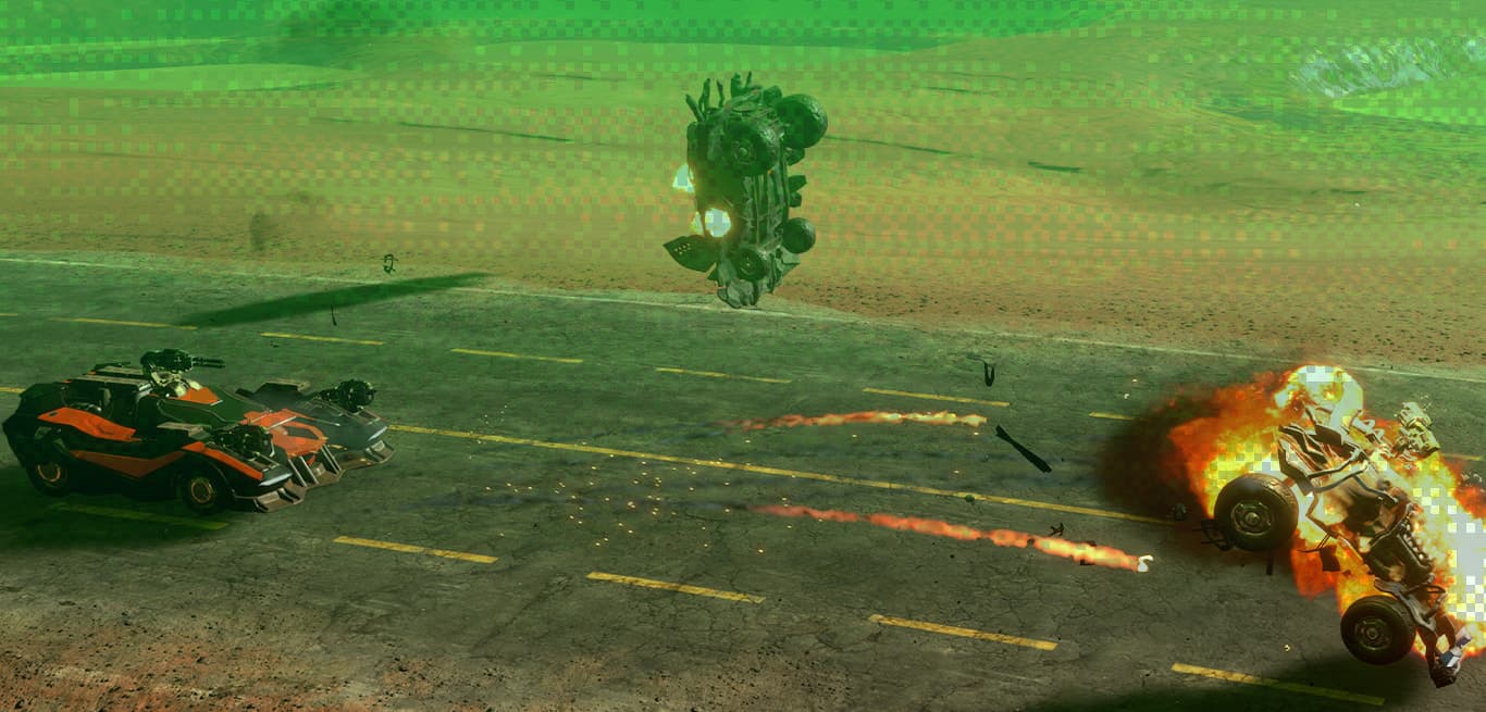Dark Future: Blood Red States puts you in command of a team of hired road-mercenaries plying their brutal trade on the ravaged highways of mid America, 2023. The government barely functions as huge corporations hold sway in the cities, while the rest of the land slides into chaos. On the highways of mid America - aka The Big Empty - pollution, stagnation, catastrophic climate change and gang warfare has resulted in a post-apocalyptic nightmare. In this dystopian alternative America, the ‘Sanctioned Ops’ - highway warriors for hire - hold sway, enforcing what few laws remain - but only if you can afford to pay. With violent gangcults hunting on the broken roads, contracts are plentiful, morals are flexible and the ways to die are growing day by day. Run your Sanctioned Ops agency how you see fit; take jobs that help citizens, catch criminals, and clear the roads of murderous scum, or engage in the murky world of corporate sabotage, industrial espionage, and hired hits. Having equipped your team with high-powered vehicles - complete with a devastating array of weapons and defences earned throughout the single player campaign - you issue your commands to your Interceptors in real time, helping them navigate the hazardous roads, attack relentless enemies, and avoid the myriad threats that lie ahead. This real time strategic play, combined with a physics-defying time manipulation mechanic, bleakly beautiful visuals, and a mysterious universe filled with danger, makes Dark Future: Blood Red States a truly unique car combat title occupying a genre all of its own, that we’re calling "RealTimeShift Vehicular Action Strategy". Features RealTimeShift Vehicular Action Strategy: command your ops and vehicles second by second as fits your tactical choices, as you hammer enemy vehicles with bullets, rockets, and ramming. Explore the sand-strewn wastes of a near-future USA, with gorgeous visuals and realistic physics powered by Unreal Engine 4. Get ahead of enemies to drop devastating mines, riddle their gas tanks with bullets from your machine gun turret, or turbo boost into their tail to send them spinning off the road. Outrun merciless corporations and deranged gangcults in high-speed highway shoot outs. Purchase new vehicles and upgrade them with powerful new weapons. Put together the most famous (or infamous) team of Ops and Interceptors in Dark Future history, then increase their abilities through successful missions and the latest cybernetic enhancements. Unravel a rich campaign filled with tactical decision making and intense action. Stay in complete control of the action strategy using either keyboard and mouse or the controller of your choosing. A faithful adaptation of Games Workshop’s Dark Future universe, guided by legendary sci-fi author James Swallow (Dark Future, Warhammer 40,000, Deus Ex, 2000 AD).