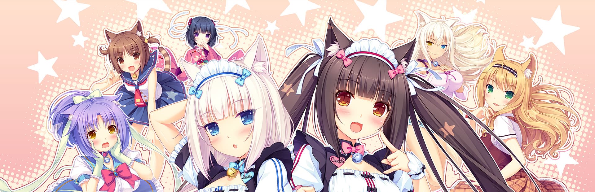 What's NEKOPARA? Why, it's a cat paradise! Kashou Minaduki, the son of a long line of Japanese confection makers moved out to open his own shop "La Soleil" as a patisserie. But upon moving out, hidden amongst his things were two of the catgirls, Chocola and Vanilla, that the family had been raising. When he tried to send them back, they begged and pleaded until he gave in and now they've opened La Soleil together. With two catgirls who really, REALLY love their master trying their very best and occasionally failing -- a heartful comedy opens for business! See the Sayori NEKO WORKs’ mascots Chocola and Vanilla like never before, moving, and in full voice on screen. And now with the E-mote System, the characters smoothly move on screen changing expression and poses in countless ways.