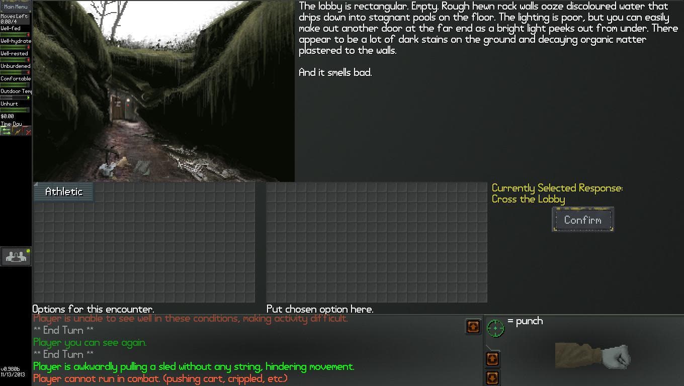 NEO Scavenger is a game where you must survive in the wasteland long enough to figure out who you are. Each turn, you must decide where to go, how to scavenge for supplies, and how to deal with anything and anyone you encounter. And with each passing minute, the pit in your stomach grows, your dehydration worsens, your muscles tire, and your body temperature drops in the cold autumn air. Choose your starting abilities carefully, because they and your wit are the only tools you have in the apocalypse!FeaturesUnique Setting - Near-future, post-apocalyptic Michigan with local cryptids and folklore. And something else beneath the surface... Turn-Based Play - Take your time with each turn, and play at your own pace. Save and quit when you want, and resume later. Permadeath - If you die, that's it. NEO Scavenger is balanced around a single difficulty level: permadeath. Your save will be deleted if you die. So choose every action carefully! No Grinding - There is no XP in NEO Scavenger. No levelling-up. Instead, progress comes from learning how to play the game better, and using your strengths to your advantage. Semi-Random - Much of the map is randomized each game, including the location of ruins, creatures, weather, and certain quest branches. Sandbox or Story - Search for clues to your identity, what happened, and who's hunting you. Or simply test your mettle against man and nature alike. Play how you want! Abilities and Flaws - Choose abilities and flaws each time you play. Different combos unlock different abilities and quest branches. Crafting - Extensive crafting system which allows for substitutions of similar items. Make a rifle scope from half a pair of binoculars, or a noise trap from a pill bottle and pebbles. Desperate Combat - Detailed combat with moves like "Tackle," "Lure," "Kick While Down," "Demand Surrender," and "Threaten." Realistic Wounds - Creatures have complex wound simulation, with multiple wound locations, infection, bleeding, and pain management. Realistic Metabolism - Hypothermia, fatigue, thirst, hunger, disease, intoxication, shelter...everything is tracked. Realistic Inventory - Complex inventory system with slots for holding, wearing, containers, and more. Fit items in grid spaces, and manage encumbrance. Hex-Based World Map - Navigate ruins, hills, forests, and plains in a hex-based map. Line-of-sight, elevation, and daylight matters. Tracking - Creatures leave their tracks and spoor on the map, which can be followed by others. Players can also hide their tracks. Hiding - Players can use hiding to avoid being seen while traveling the map, as well as during story encounters. Hunting - Trap small game for food and fur, or track and kill larger prey on the map for butchering. Hacking - Use hacking skills to unlock scavenged laptops, cellphones, smartphones, and tablets. Mine them for paydata, or snoop through personal files. Foraging - Search for edible plants and water, and use special skills to identify what's safe to eat. Haunting Soundtrack - Music composed by Josh Culler, specifically for NEO Scavenger, plays periodically, lending an atmosphere of loneliness and desperation. (Also accessible as mp3s outside game.) Creature AI - Wandering creatures go about their own business, hunting, scavenging, and hoarding. Morale affects their choices, and some will gang-up and cause trouble. Dynamic Weather - Temperature, rainfall, and night/day are based on real-world data for autumn in the area. If you live long enough, you may see snow fall. Detroit - Take refuge from the wasteland in one of mankind's last bastions of safety. Buy supplies, get medical care, and seek clues in a cyberpunk-styled city. Trading Cards - Collect NEO Scavenger trading cards, badges, emoticons, and profile backgrounds!